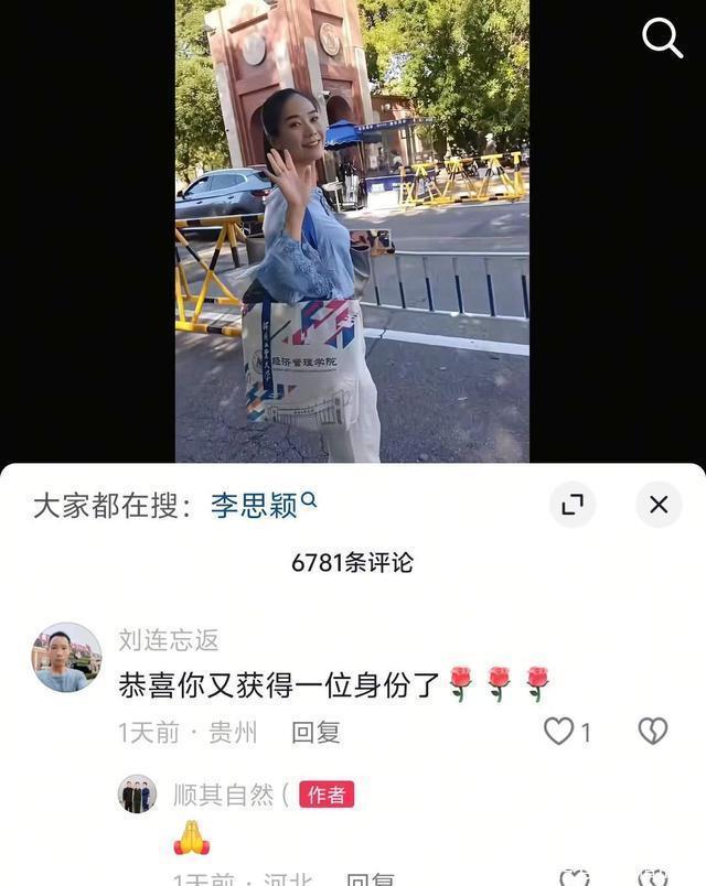在李思颖妈妈9月6日更新的动态中,还拍摄了她去报道的片段,李思颖身穿蓝色上衣和白色裤子,满脸笑容的和镜头打招呼,身上还背着河北工业大学的帆布包。 而在评论区中,也全都是在恭喜李思颖考研上岸,祝愿她能有一个美好的未来。