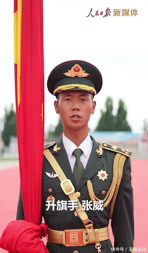 还有升旗手张威,他来自河南省驻马店,在2015年的时候,17岁的他参加了爱国主义教育活动,和国旗护卫队进行了合影,此时张威心中就立志要成为升旗手。 为了这一愿望,张伟报名参军,并在2019年被选入国旗护卫队,三年后他又成为了擎旗手,期间还完成了国庆节升国旗的任务,更是在今年大阅兵当天担任升旗手。